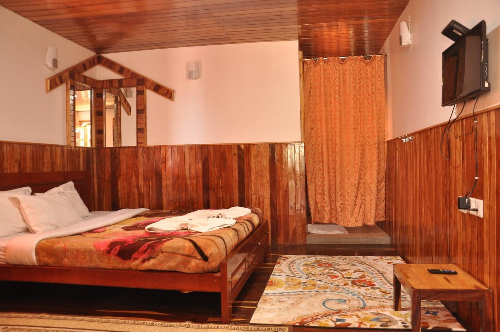 For those who require a comfortable stay with no walking or stairs, this well-designed room sits opposite our reception area. The wooden panelling on the walls and ceilings makes the room warm and inviting, there is a front sitting room with sofa, a separate bedroom with LED TV, and an enclosed front sit-out to enjoy the fresh air. Those who bring along their dogs often mention how easy it is to accommodate them with this feature. 24 hr hot water provided. No walking stairs required. This room can be booked with adjoining room.