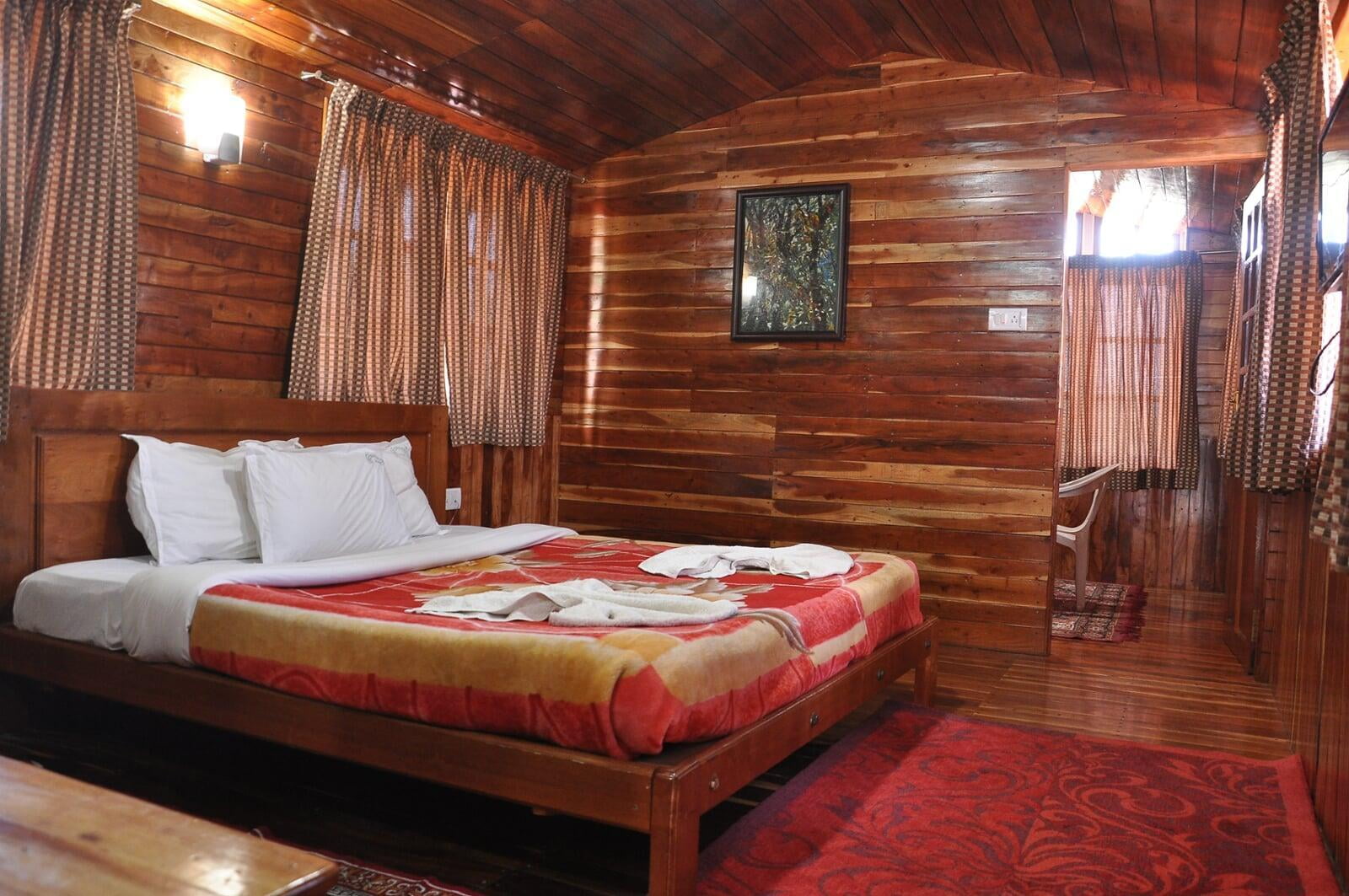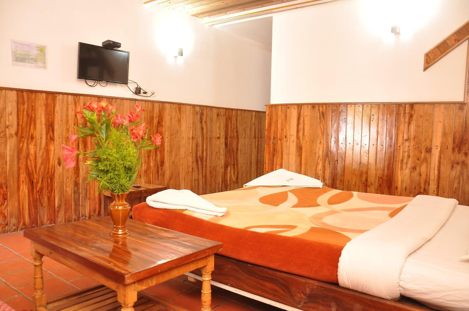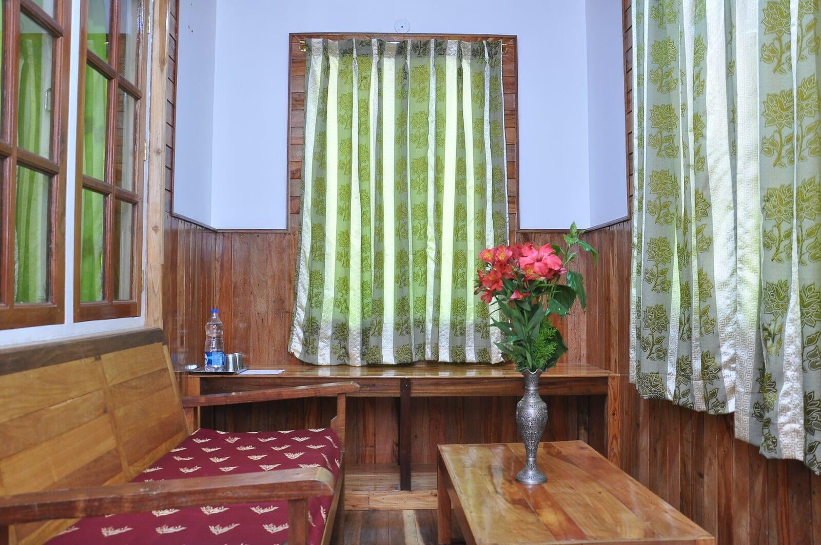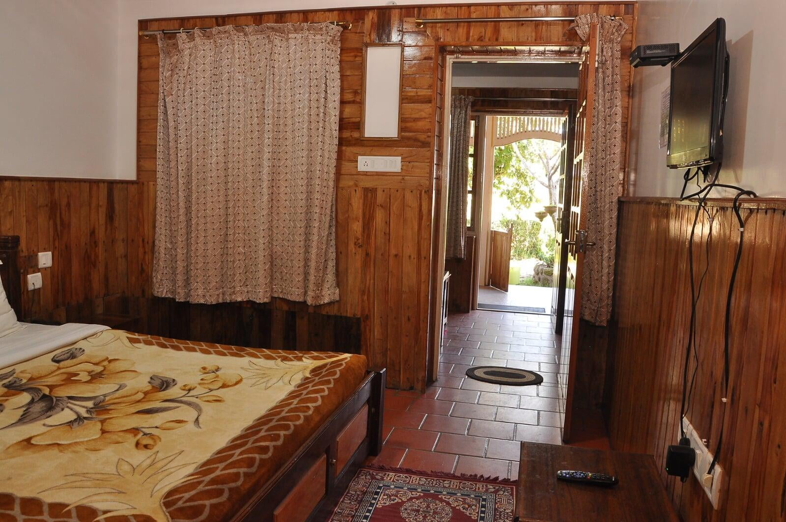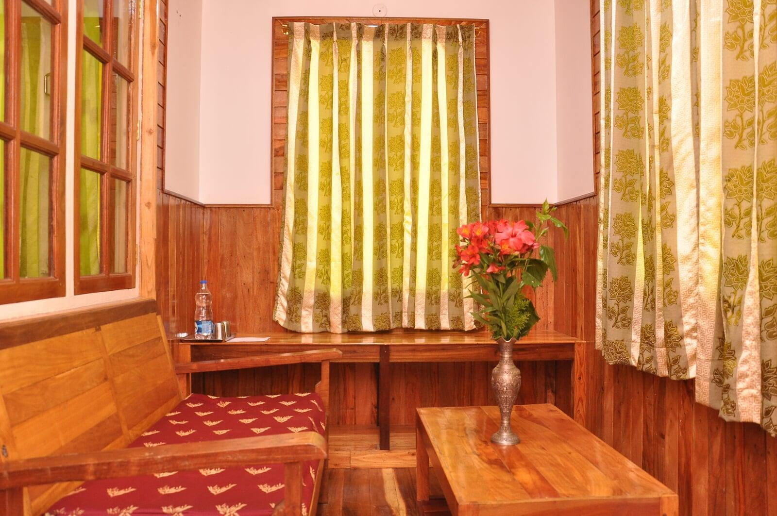 For those who require a comfortable stay with no walking or stay, this well-designed room sits opposite our reception area. The wooden panelling on the walls and ceilings makes the room warm and inviting, there is a front sitting room with sofa, a separate bedroom with LED TV, and an enclosed front sit-out to enjoy the fresh air. Those who bring along their dogs often mention how easy it is to accommodate them with this feature. 24 hot water provided. No walking stairs required. This room can be booked with adjoining room.