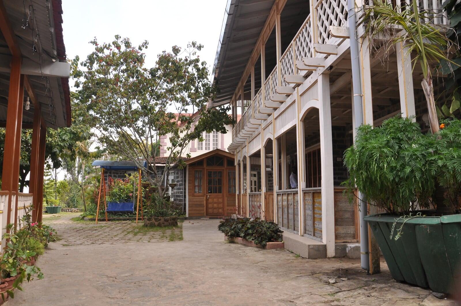 This room has one of the best views out to the mountains and gardens from the corner of the sprawling open balcony protected by a roof. Walk in to the front sitting room with large sofa and table, then enjoy a spacious bedroom with LED TV and attached bath, and an added feature of the outside back door to another private seating area with small garden. If you are looking for a spacious place to stay with many places to sit and visit, this room is for you. 24 hr hot water provided. A few stairs required to reach the wooden balcony.